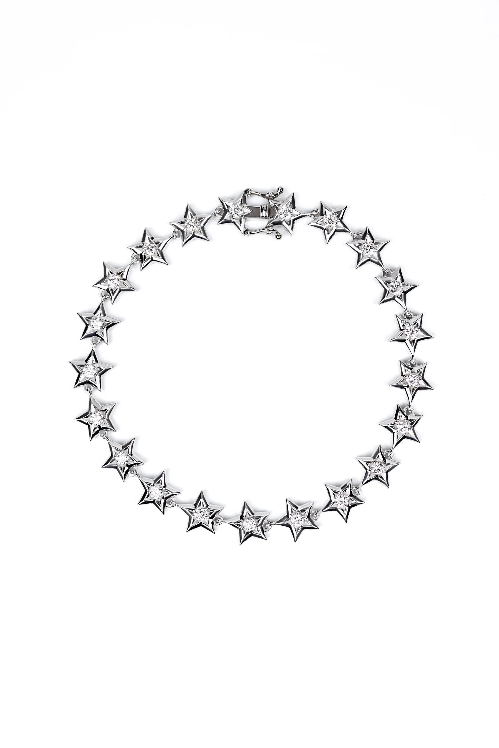 Designed for Dreamers. Inspired by the endless beauty of the night sky, the Star Link Necklace is a bold yet refined expression of celestial elegance. Featuring a seamless sequence of sculptural, knife-edge stars, feature a brilliant cut diamond, creating a luminous effect that commands attention.