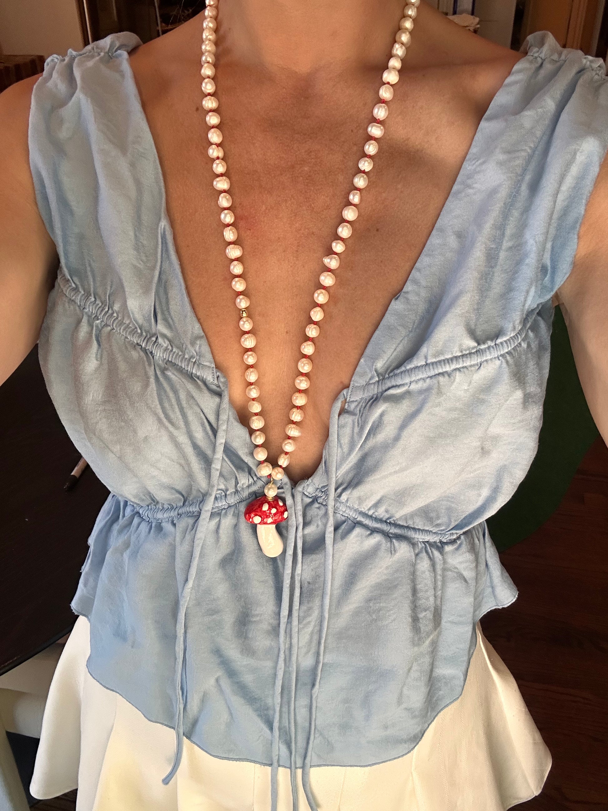 By Cashfana. Hand made Italian ceramic, natural pearls on a cotton cord.