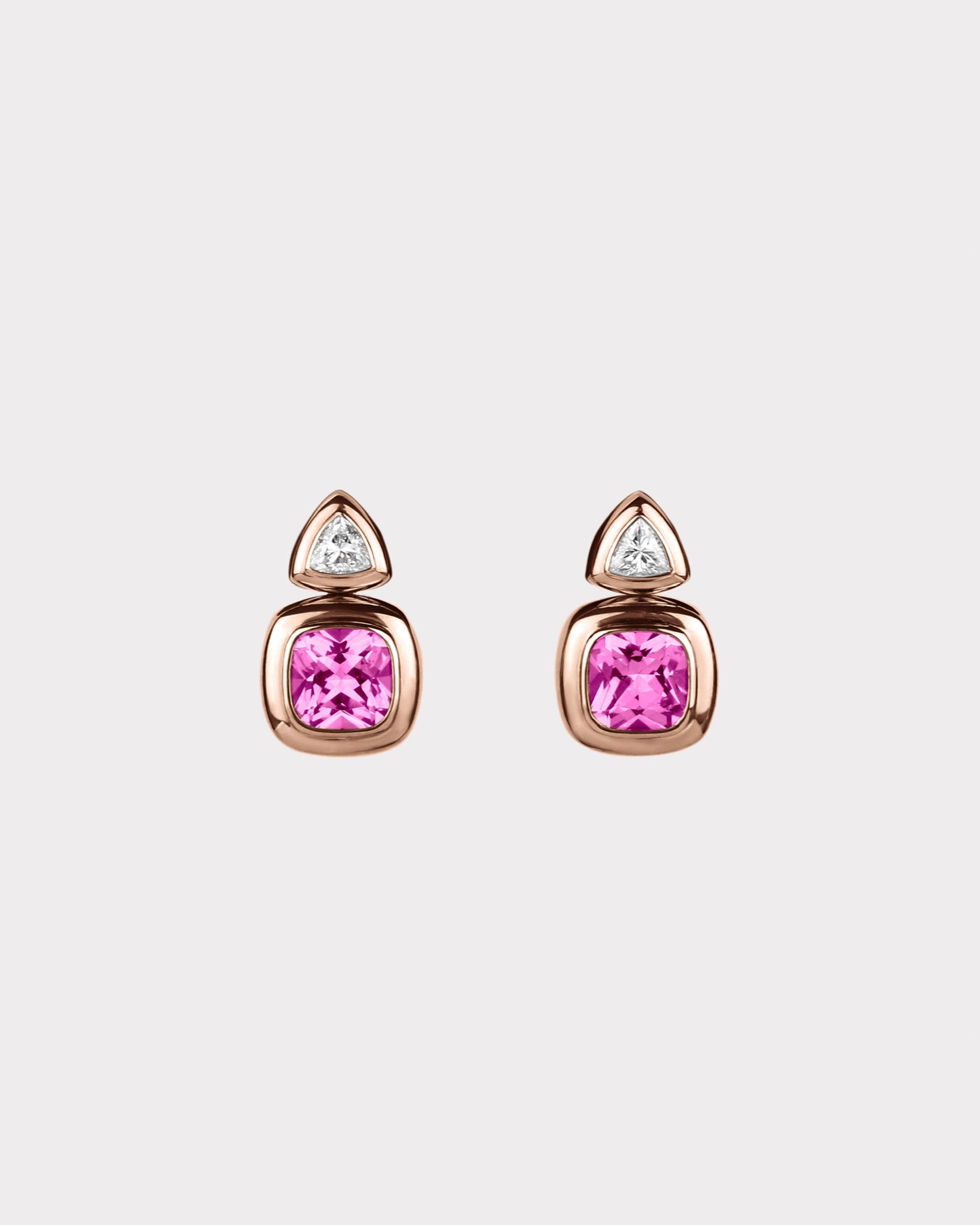 - Stud stone size: 4mm trillion cut lab diamonds and pink saphires